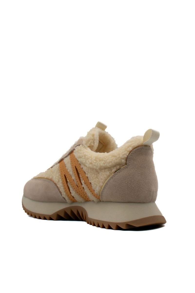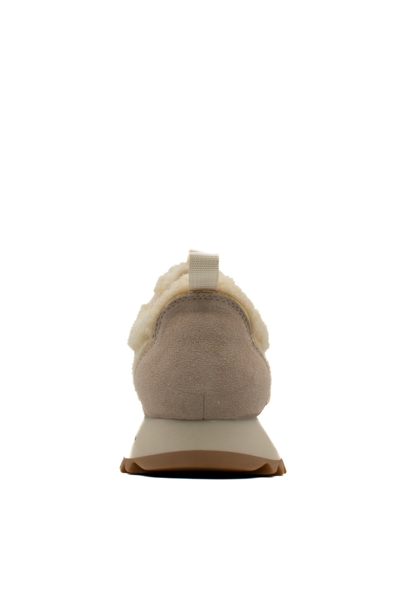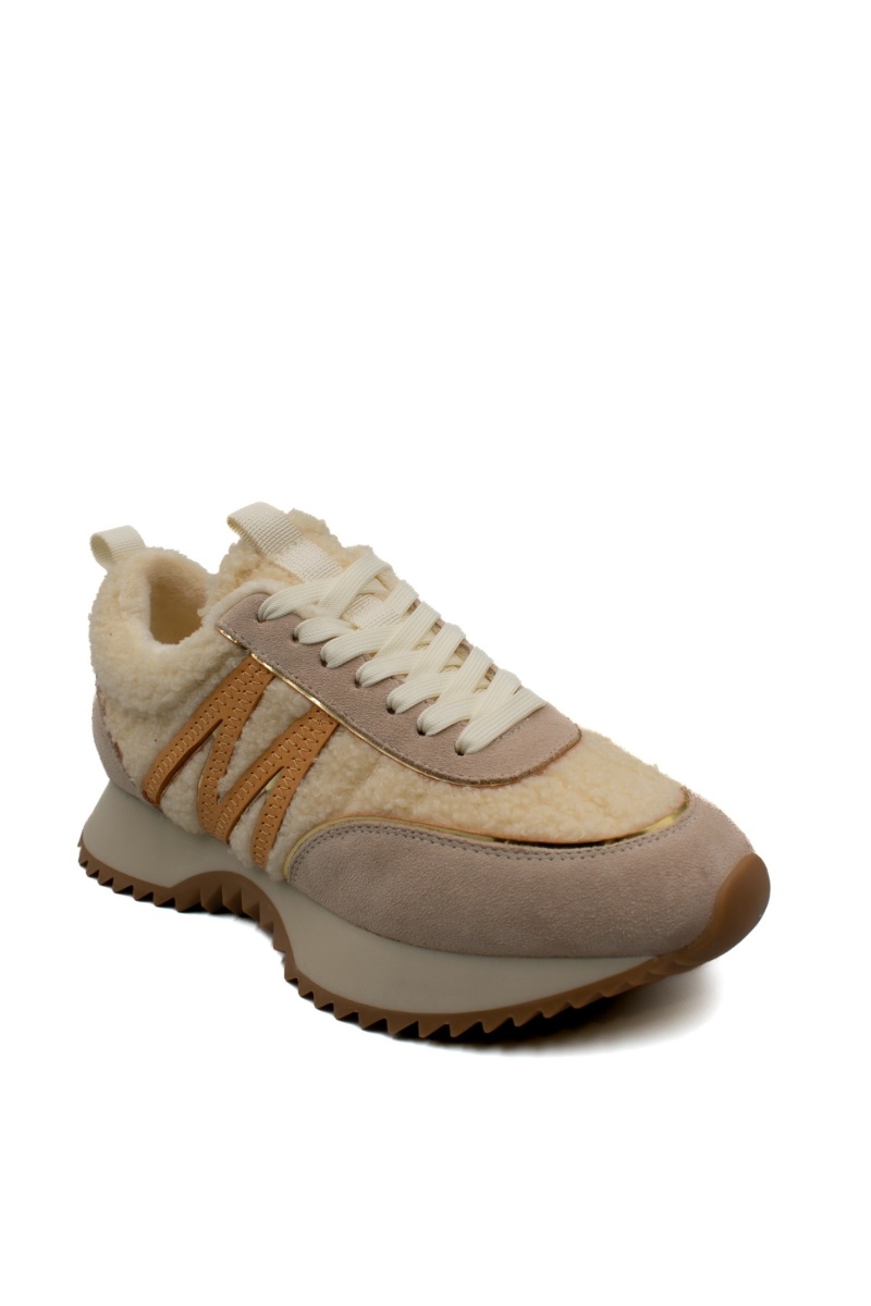 Дамски зимни маратонки от встествен велур и вълна – пясъчно бежово