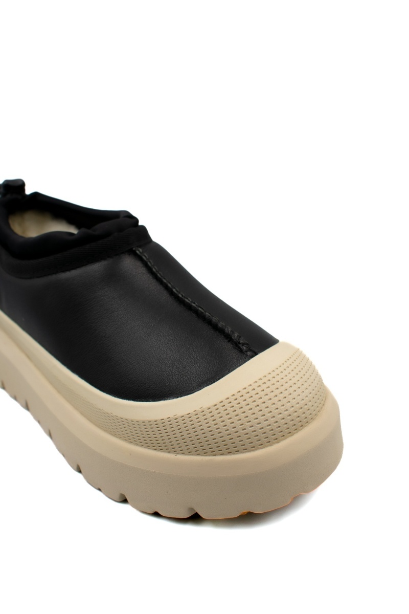 | Грижа и подръжка | Почистване: Избърсвайте кожата и гумирания борд с мека влажна кърпа след носене. Грижа: Използвайте подходяща боя или вакса за черна естествена кожа, за да поддържате еластичността и цвета. Защита: Препоръчваме редовно импрегниране със спрей за защита от вода и сол |