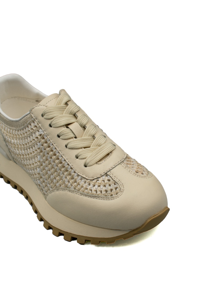 | Грижа и поддръжка | Почистване: Кожените части почиствайте с мека влажна кърпа. Текстилните зони могат да се третират с хладка вода и неутрален сапун. Защита: Използвайте универсален импрегниращ спрей за кожа и текстил, за да запазите светлия цвят от замърсяване. Важно: Не перете в пералня, за да запазите структурата на естествената кожа и естествената стелка. |
