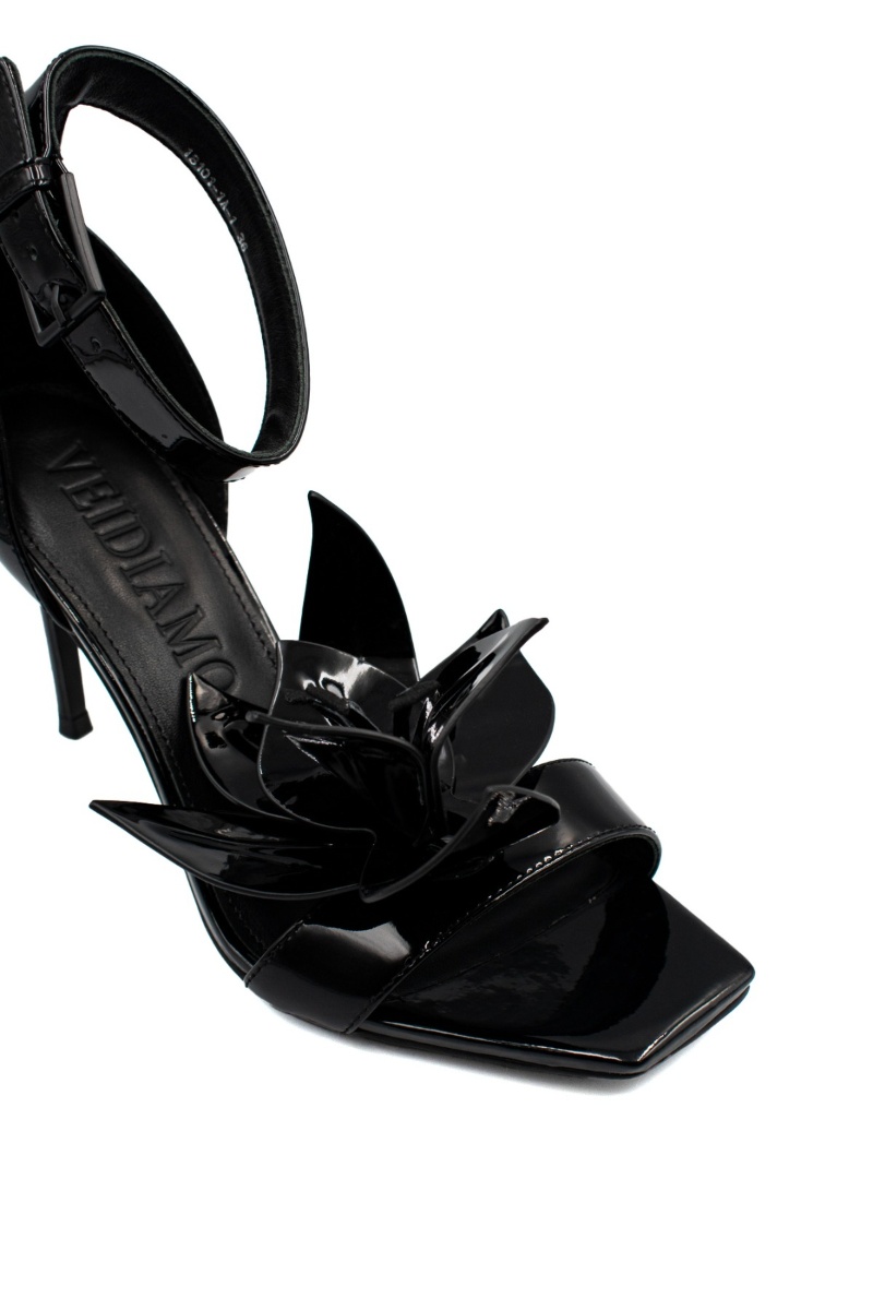 | Грижа и поддръжка | Лакирана кожа: Почиствайте с мека памучна кърпа. Използвайте препарати специално за лак, за да запазите блясъка и да предотвратите напукване. Подвижен елемент: Съхранявайте цветето отделно в кутията, когато не го използвате, за да не се деформират листенцата му. Съхранение: Избягвайте допир с други кожени обувки, тъй като лакът може да абсорбира цветове при продължителен контакт. |