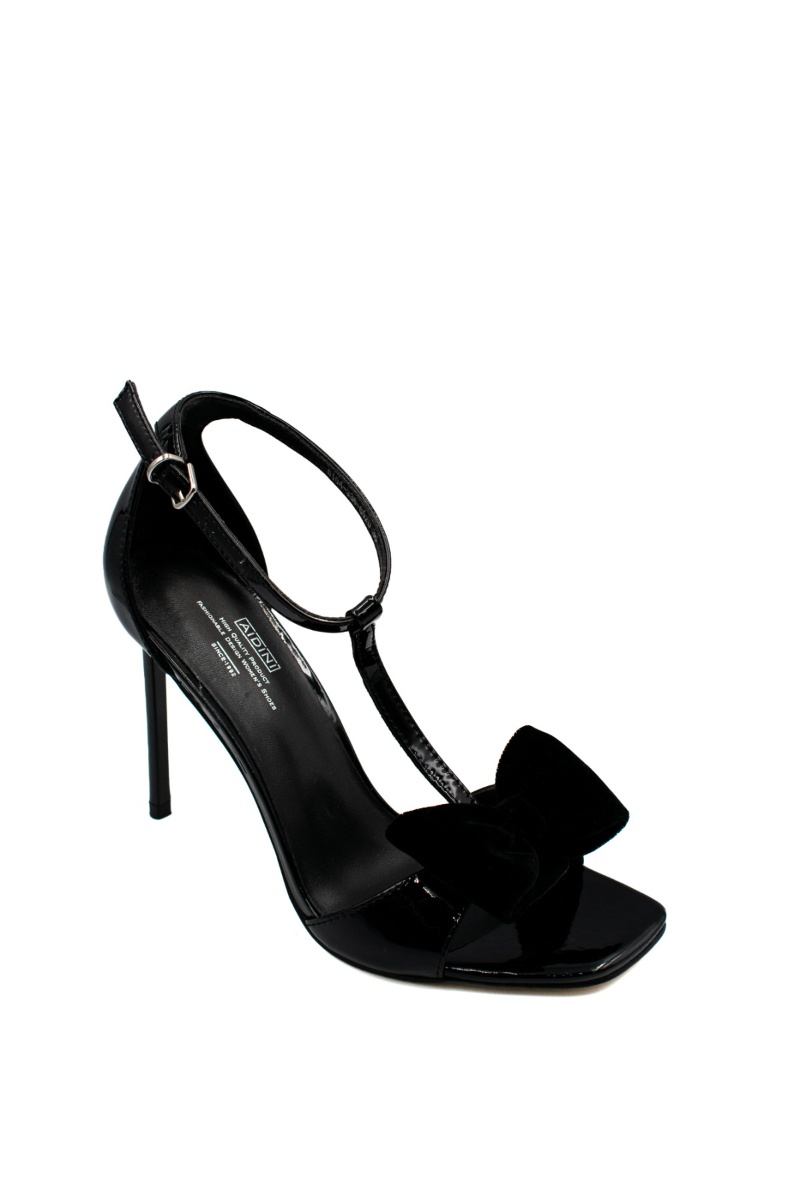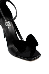 Дамски сандали от естествена кожа и лак с кадифена панделка
