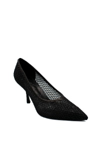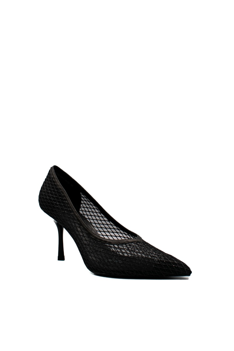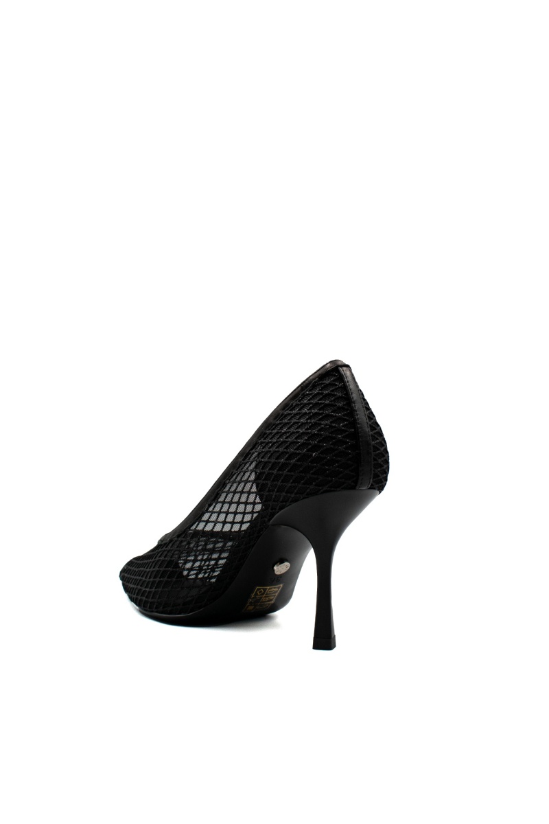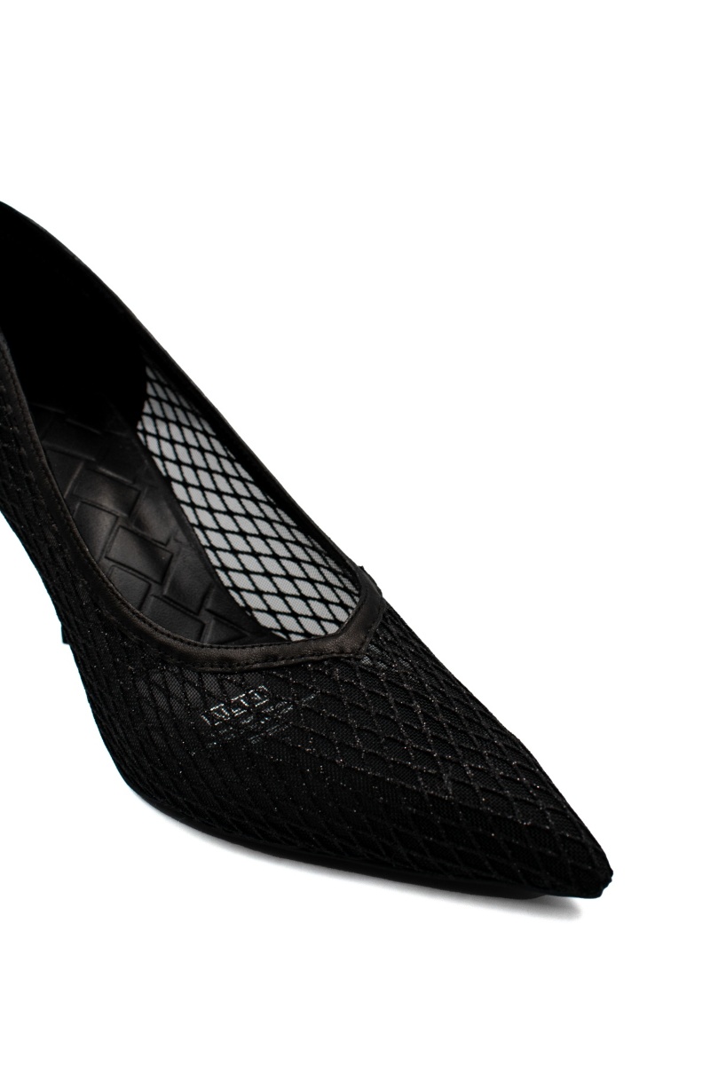 Елегантни обувки на ток от естествена кожа и черна брокатена мрежа