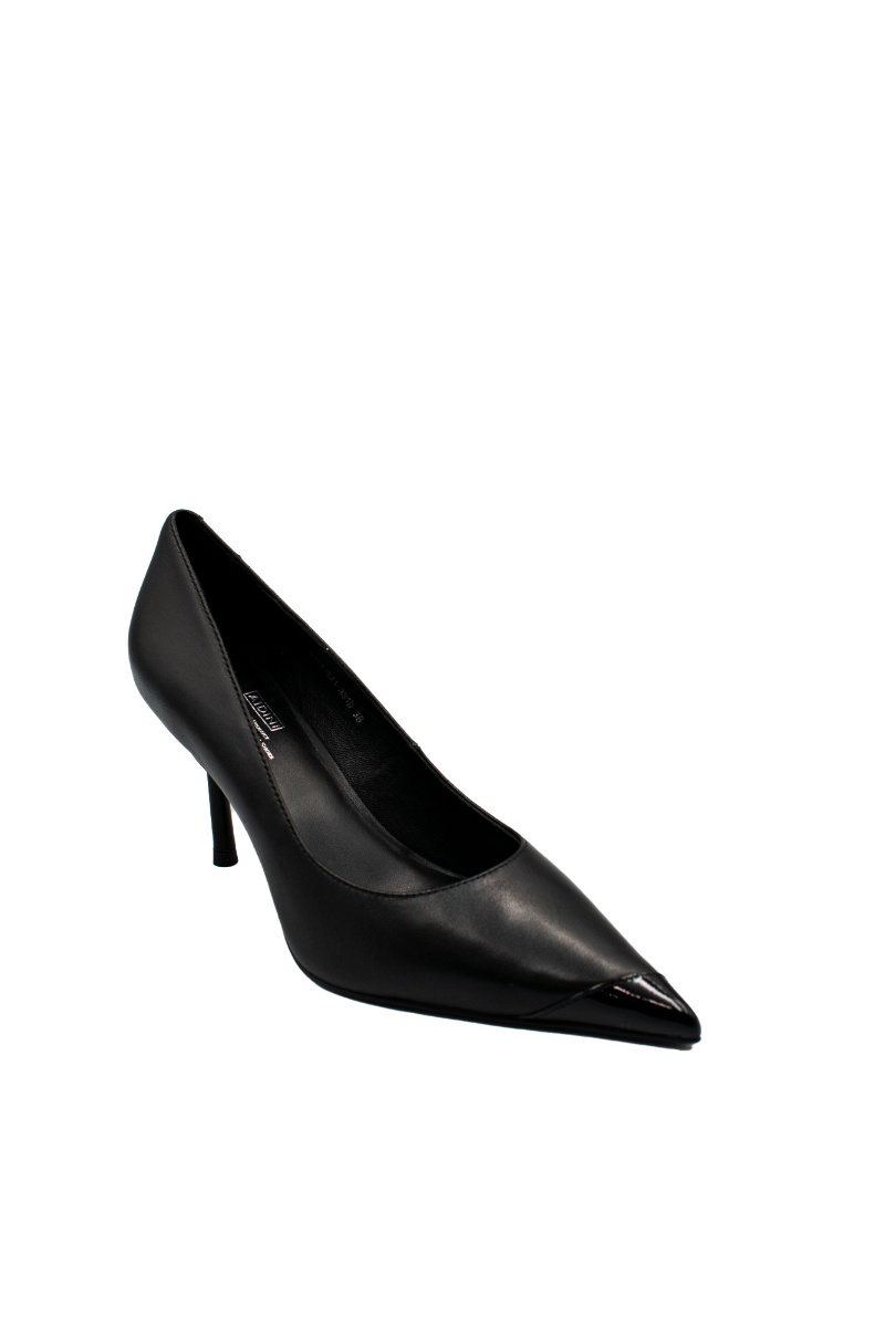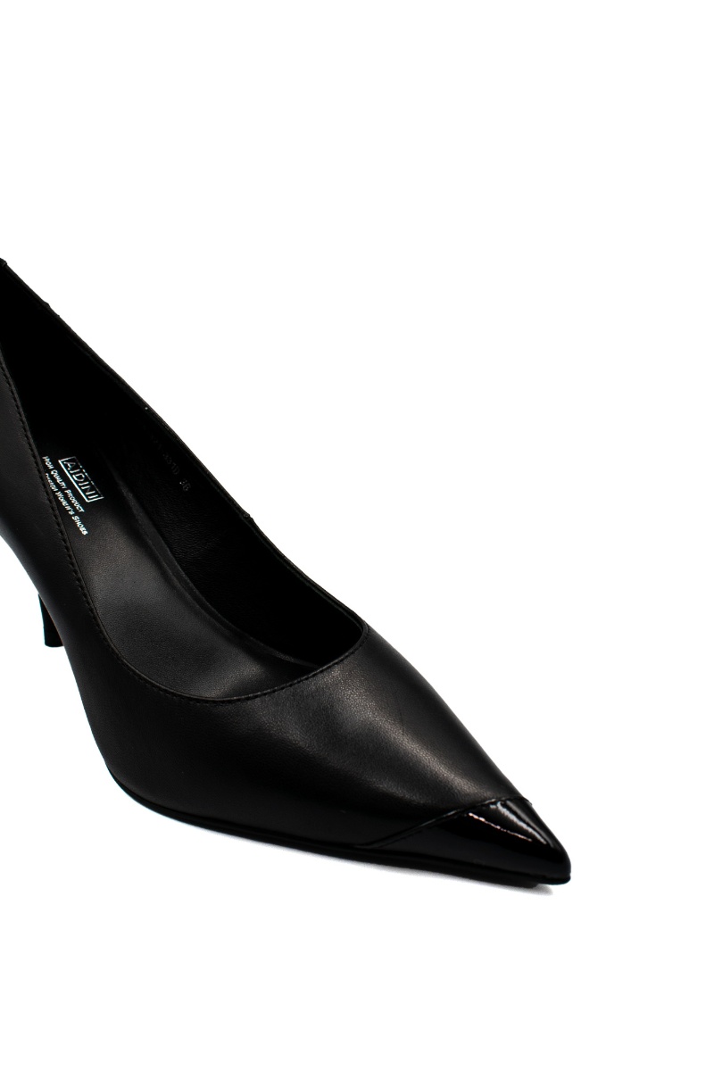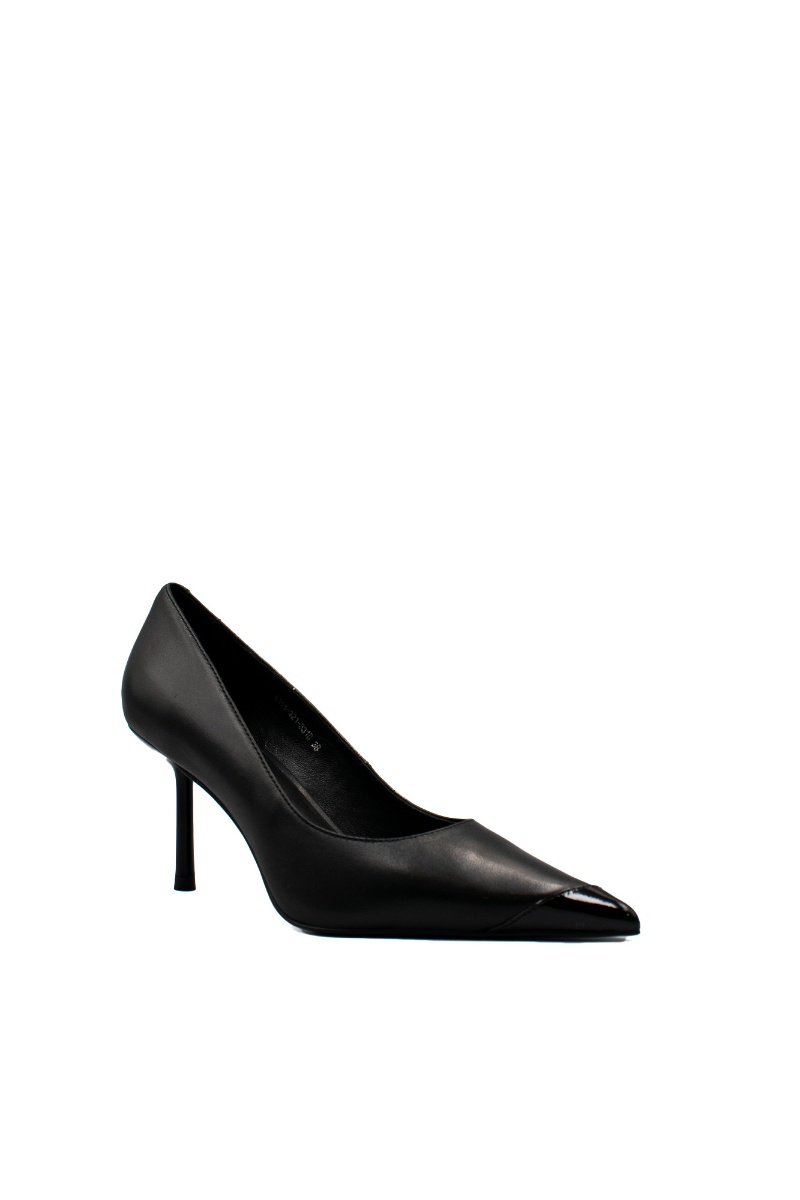 Класически дамски обувки на ток от естествена кожа с лакиран връх