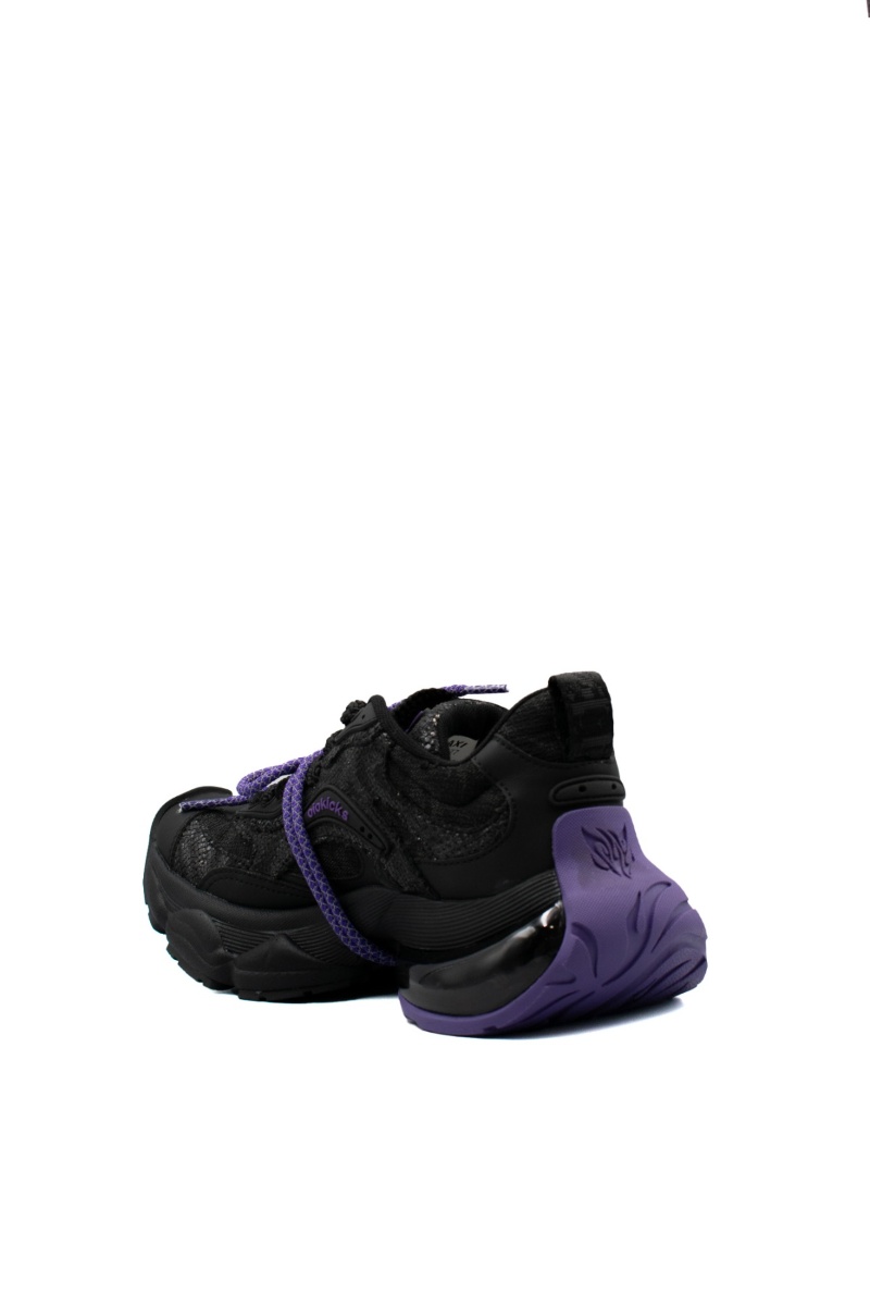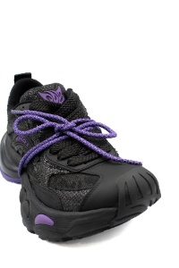 | Подметка | Масивна, многослойна „chunky“ конструкция с интегрирана гел-амортизираща система с метален ефект под петата и лилава грайферна подметка за сигурност |