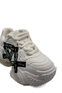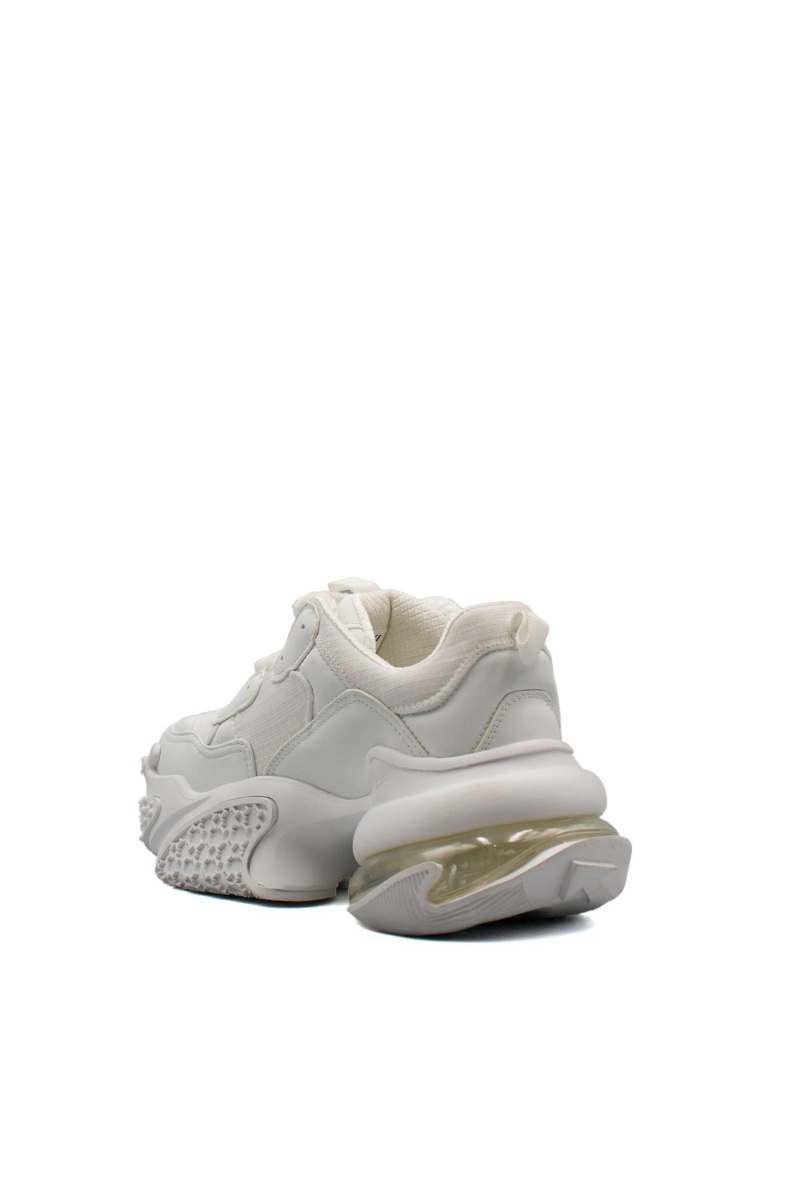 | Грижа и поддръжка | Почиствайте кожените части с мека, леко влажна кърпа или специализирана пяна за кожа. Текстилните зони могат да се почистват с мека четка. Избягвайте прането в пералня, за да съхраните целостта на естествената кожа и деликатната стелка. Използвайте импрегниращ спрей за бяла кожа, за да предпазите обувките от влага и замърсяване. |